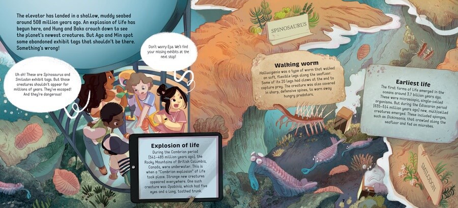 Natural history museums are especially interesting to most kids as they are home to dinosaur fossils—and the Museum Kids are no exception! As they explore the museum, they happen upon a magical elevator that takes them back in time and around the world! Readers travel with the Museum Kids to see Earth's first life-forms, woolly mammoths, and even dinosaurs in their habitat. Beautiful illustrations complement the at-level text and show the danger, adventure, and fun had by the Museum Kids in this engaging volume. A concluding quiz allows readers to test what they have read.