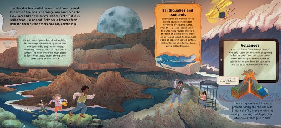 How did Earth form—and what would it be like to see it? What does it look like when a volcano erupts? The Museum Kids are endlessly fascinated at the natural science museum to learn about these and other facts. Then, they enter a magical elevator and travel into the past and around the world to find out more! Including science facts about the structure of Earth, ecosystems, and much more, this beautifully illustrated volume engages curious readers with the story of the Museum Kids and all the danger, adventure, and fun they encounter. A concluding quiz tests what everyone has learned together.