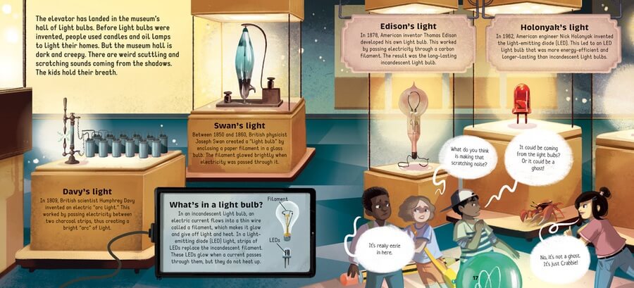A museum of technology would be fascinating. Full of old computers and cell phones, as well as other machinery, it would highlight how far humankind has come! The Museum Kids explore the displays and then happen on a magical elevator that takes them back in time to some of the most pivotal moments in tech history. Readers travel alongside them, investigating many topics and inventions that support STEM curricula. The Museum Kids solve problems, have adventures, and enjoy their journey, and a concluding quiz tests what they—and readers—have learned along the way.