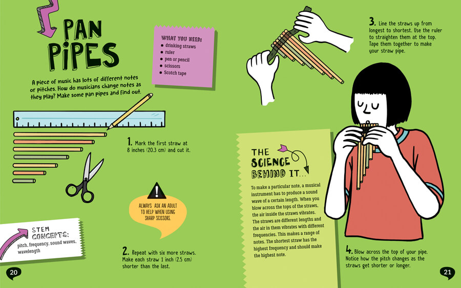 It's often said that music can soothe the soul. Budding young scientists may wonder how the sounds that make up their favorite music work. This exciting title has the answers! It not only explains key ideas involving sound waves including wavelength and frequency, but it also features activities that allow students to experience what they are learning! First students are instructed to think like scientists using the scientific method. Then they must gather the materials needed for each experiment, which mainly consist of household items such as a pencil and pen, a rubber band, a bucket, and a ruler. Helpful illustrations and age-appropriate instructions then guide readers through each step in the experiment and in learning important STEM concepts. A further information section and a glossary also make this title a valuable addition to any aspiring scientist's curriculum!
