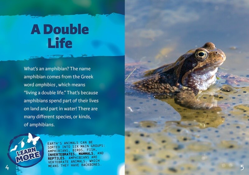The name amphibian comes from the Greek word amphibious, which means “living a double life.” That's because some amphibian species spend part of their lives both on land and in water. This book offers a concise overview of the general amphibian life cycle as well as fascinating examples of many species within the animal group. Readers come to understand the steps that frogs, toads, salamanders, newts, and caecilians go through on their journey to adulthood. This hi-lo book uses accessible language to communicate curricular concepts in a reader-friendly way. Helpful diagrams are also included.