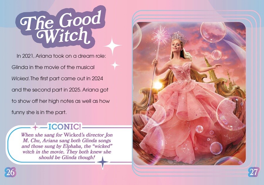 Whether exploring her four-octave vocal range or acting in movies and on TV, Ariana Grande is truly an icon in popular culture today! Her acclaimed albums have brought her worldwide fame and millions of fans. This book takes readers on her journey from childhood, to Broadway, and beyond, highlighting her greatest accomplishments. Full-color photographs pair with text written especially for struggling readers, showing Ariana throughout her career. Fact boxes add even more detail for fans new and old.