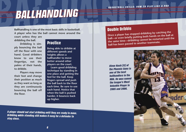 This book gives basic as well as more advanced basketball moves. A field diagram and basic scoring rules help new players learn the game. Readers will learn dribbling techniques, how to make and receive different types of passes, and a variety of shooting and defensive skills to help them play like their favorite stars.
