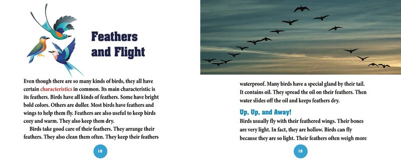Whether it is the tiny, flitting hummingbird, the long-legged ostrich, the exotic bird of paradise, or the common chicken, birds are a fascinating and unique group of animals. In this accessible book, readers learn about different kinds of birds, their life cycles, the habitats in which they live, adaptation, and behaviors. A helpful glossary and follow-up activity enhance the text, which supports Next Generation Science Standards. Fun facts and full-color photographs are bound to get even reluctant readers enthused about our feathered friends.