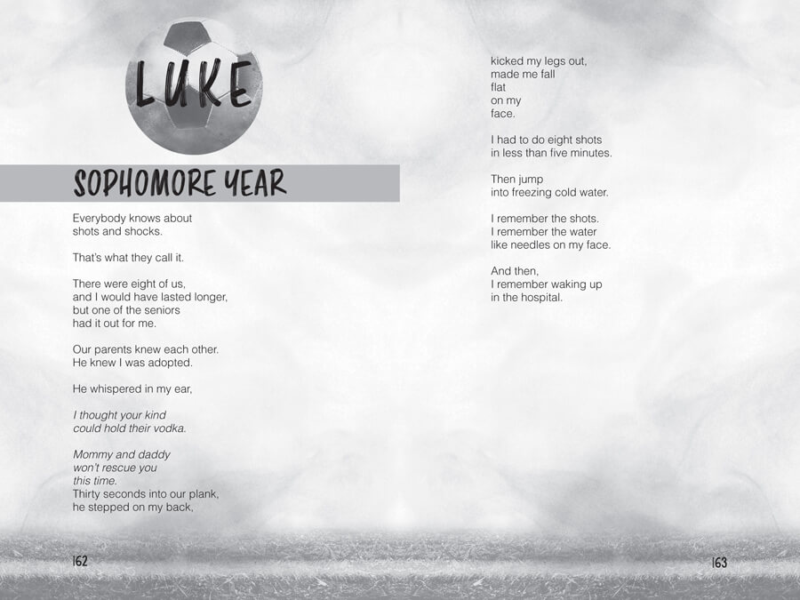Tae has moved twice in his life. First, from South Korea to the United States when he was adopted as a baby, and then to a new town before he started high school. In Tae's new school, he's one of the youngest players, and the only person of color, trying out for the varsity soccer team—a team known for its violent hazing practices. Tae wants more than anything to be part of the team, but worries about fitting in. Then, he sees a familiar face. Luke is a soccer star on his way to scoring a role as the team captain and a full ride to college, but no one knows his secret—that he was adopted too. Tae and Luke met in an adoption group years before, and Luke's first instinct is to help Tae fit in. But tradition is tradition, and Luke might not be able to save Tae from being hurt in the hazing rituals without risking his own reputation.