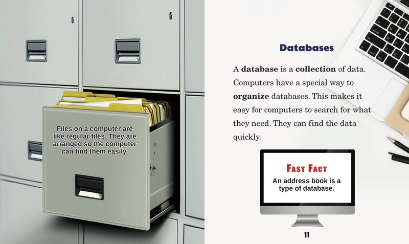 Computers "think" in terms of data and databases. In this simple text, readers find out exactly what that means in the world of technology. They take a first look at what data is and how computers use it to do all the things they can do. Using easy-to-follow examples, readers are introduced to the fundamental concepts of databases, how they are used in the real world, and how computers use them to find the information they need. Presented with eye-catching photographs, this book includes fast facts and a fun activity that will captivate readers as they build their knowledge of computers.