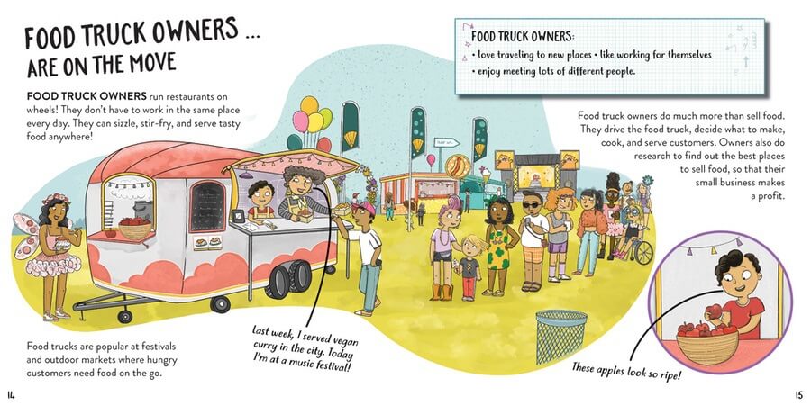 Do you like working with food? Then a career in food might be perfect for you! If cooking doesn't sound like a job for you, farmers are responsible for growing and cultivating our food. Nutritionists also work with us to help us create diets that are better for our bodies and our lifestyles. In this colorful book, Billie and Mia the cat go on an adventure, exploring the many jobs relating to food. With the help of their magical dress-up box, the two are transported to each job so they can learn about the profession.