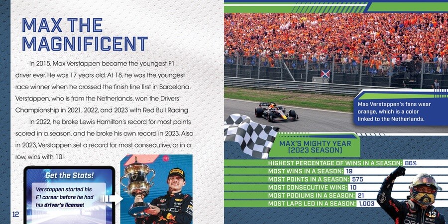 Formula One racing is about g-forces to the max. And on top of handling these, drivers need to make decisions while exceeding speeds of 200 miles per hour (320 kph)! Only a select few competitors compete at this high level of motorsports. This spectacular book captures the excitement of a Grand Prix, describing the great moments on the track and the champions and teams that can boast of the most electrifying victories. F1 fans looking for mind-blowing statistics and impressive on-track action photographs will love the book's winning design and inspiring, at-level text.