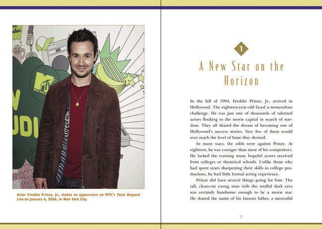 Freddie Prinze, Jr. took a big risk when he went to Hollywood as an eighteen-year-old actor with no professional experience. He began his career with only his father's famous name, Prinze, and aspirations of becoming a star. Initially, Prinze, Jr. could hardly pay his rent and struggled to find acting jobs. Now famous for his roles in I Know What You Did Last Summer and She's All That, Prinze, Jr. persevered through the tough times and became a successful Hollywood star. This biography will inspired your readers.