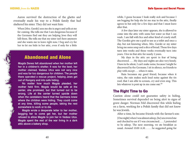 As Adolf Hitler's control over Germany became absolute, those Jews who could not run from the Nazis were forced into hiding. Readers will experience the harrowing first-hand narratives of those who concealed either themselves, in bunkers or attics or even the forest, or by their Judaism, relying on Aryan looks to hide themselves in plain sight. Some people tried to plan in advance, constructing secret rooms in which they hid, silently, relying on the kindness of trusted friends. Others hid wherever possible, building bunkers into the dirt floor of barns, in the ghettos in order to avoid being shot or deported to death camps, and even in the rubble of bombed out cities as the war progressed.