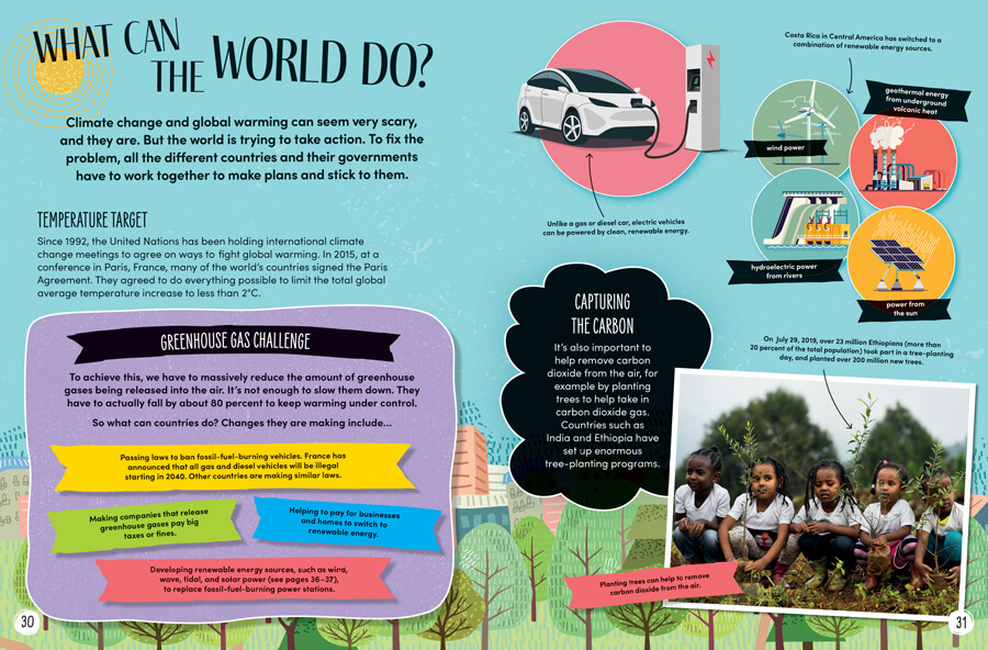 "Global warming, greenhouse gases, and their causes and effects are explored in this informative book from the Explore the Planet series (6 titles). Colorful illustrations, charts, and photographs depict the changes happening around the world and give this title the feel of an infographic resource." —Booklist