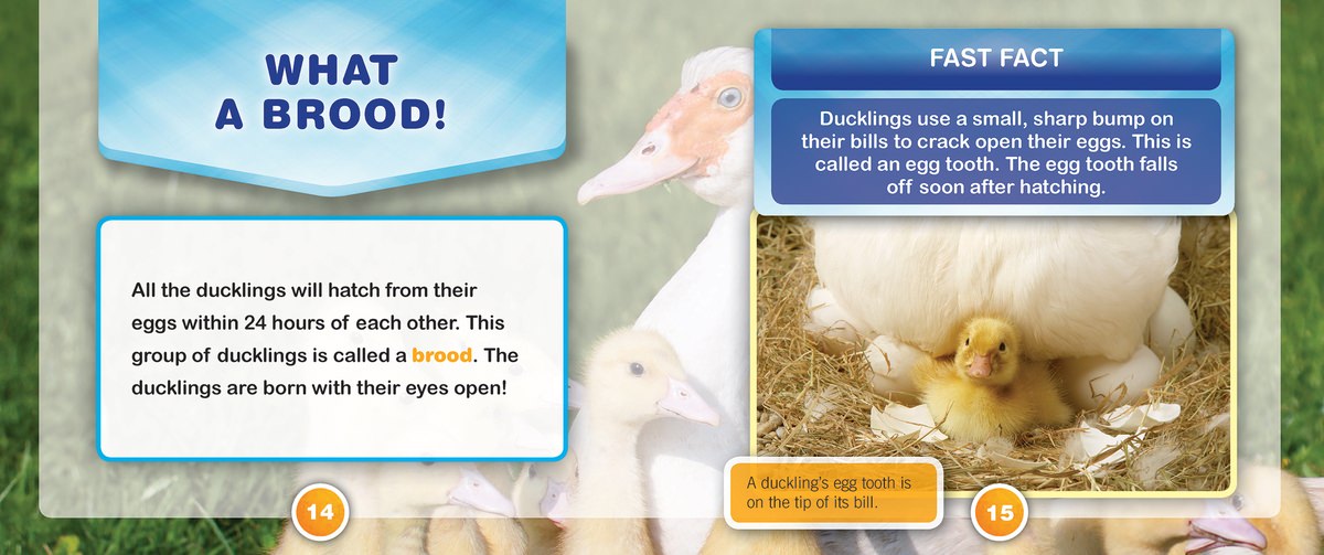 Ducklings are adorable fluffy birds that love to play. Days before they hatch, peeping can be heard coming from inside their eggs. Through fast facts and vibrant photographs, readers will learn how vulnerable these babies are to predators. Staying close to their mother hen, ducklings learn to fly and swim safely on their own before they leave the protection she provides. A Learn More section with books and websites provides the tools readers need to learn more about these lucky ducks.