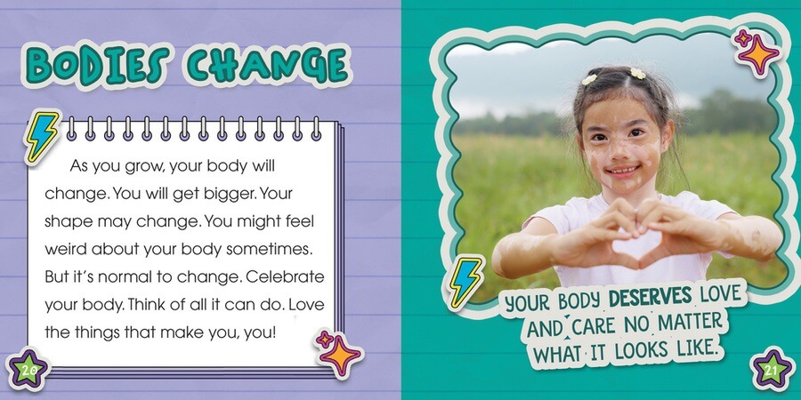 Appreciating one's body is integral to mental and physical well-being. When children love their bodies, they're more likely to treat them with care, proper nutrition, exercise, and rest. This empowering volume encourages readers to learn about their bodies and reflect on what's so great about them. They will also gain the tools needed to keep their bodies safe and well. Age-appropriate text contains narrative stories featuring children dealing with relatable feelings over their bodies and learning to care for them. Readers will be motivated to take proactive approaches to protecting and celebrating their bodies—essential lessons they can use throughout their lives.