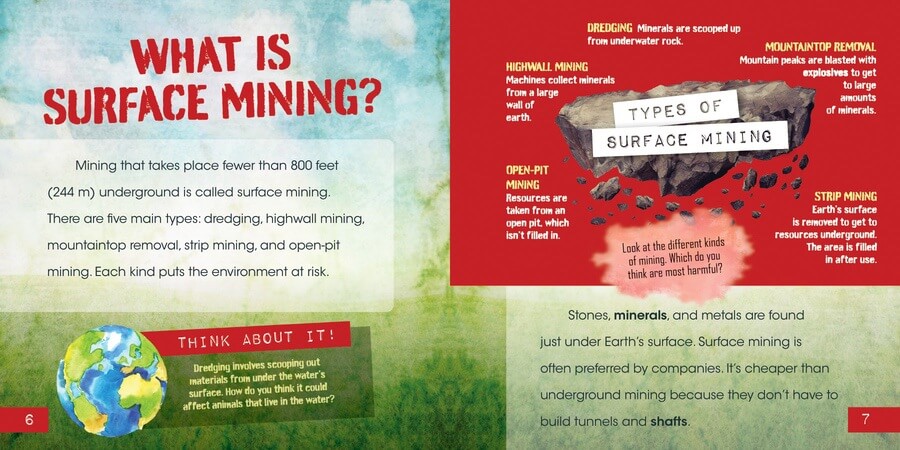 Many of the minerals we use every day come from surface mining. However, this practice harms many habitats through deforestation and contamination of air and water. In this book, readers learn how surface mining is used and how it can harm habitats. They'll also learn about ways that people can work to protect the environment. Incredible visuals show readers what mines look like, while a graphic organizer and fact boxes deepen their understanding of the issue. Readers are sure to dig deep on the issue of surface mining in this fact-filled book.