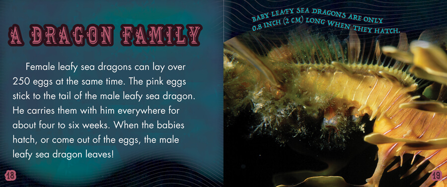 Off the southern and western coasts of Australia lives a fish with transparent fins shaped like seaweed, undulating slowly in the water, mimicking its plant surroundings to survive. This incredible example of evolution is an endangered species, a sad reality but a great opportunity to learn about ocean life. This book highlights the incredible physical attributes of the leafy sea dragon through astonishing full-color photographs and includes fascinating facts on every page to entice readers of all ages into absorbing essential facts of marine biology.