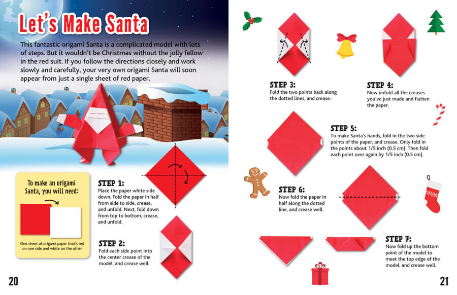 Origami—the Japanese art of paper folding—can be made to fit any occasion, even Christmastime! With the help of this engaging how-to guide, readers learn to fold festive projects such as a Christmas tree, a reindeer, and a Star of Bethlehem. Step-by-step instructions guide readers through each fold, while helpful photographs show what the projects look like at various stages. Young artists of many ages and abilities can enjoy folding these fun crafts, which can be given as gifts and used to decorate.