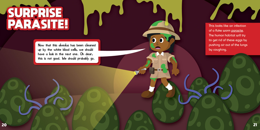 What could possibly make their home in the human lung? In this volume, curious readers find out! With the help of some friendly guides, readers are introduced to the structure of the lungs and how they work—as well as the microscopic organisms that might have made the lungs a habitat. Including problems that could arise with the lungs, this colorful, playful look at the main part of the respiratory system complements the science curriculum and human body lessons.