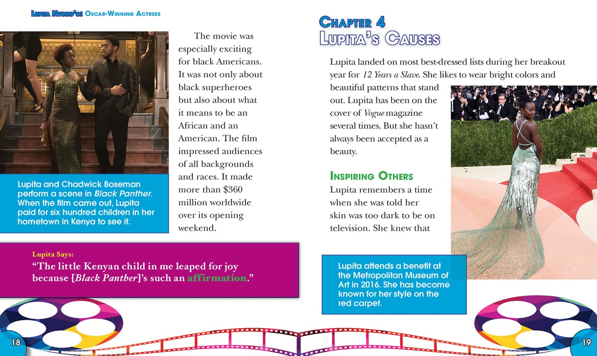 Lupita Nyong'o, born in Mexico and raised in Kenya, became a bonafide star with the 2013 movie 12 Years a Slave, for which she won the Oscar for Best Supporting Actress. Since then, she has shown depth and range in a variety of other movies, including Star Wars: The Force Awakens and Black Panther. Beyond film, Nyong'o is greatly admired as an advocate for women's rights as well as animal conservation. This gifted actor's path to stardom is told through engaging and accessible text, fascinating fact boxes, and inspiring quotes from Nyong'o herself.