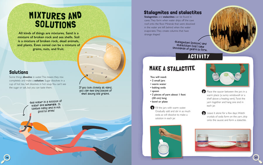 Learning about materials—the substances things are made of—and their properties is an important science concept and a useful way to stay curious about the world. This engaging book combines materials, a curricular science topic, with crafts, activities, and projects. Each relevant topic—including solids, liquids, and gases; recycling; and elasticity—is clearly explained with at-level text and then followed by an activity that highlights a particular aspect of the topic. These projects, which contain step-by-step instructions and easy-to-find materials, include a pouring race, a stalactite formation, a recycled paper task, and a chocolate treat recipe that readers can share with friends!