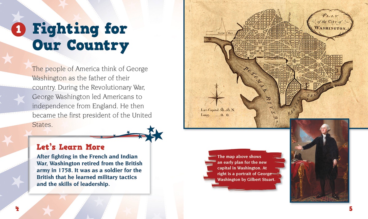 George Washington was one of the most influential figures in American history. How did the first president of the United States become such a strong leader? This easy-to-read text clearly highlights Washington's life and accomplishments, from his time working as a land surveyor and planter to his service in the Virginia militia and the French and Indian War. Readers will be enthralled to learn about his rise to commander in chief of the American Army. Washington's leadership and time as president are just one example of how an American can contribute to a country and a culture. An array of primary sources, including historical paintings, maps, objects, and photographs is included.