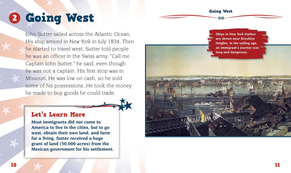 John Sutter's entrance into American history began because of a rocky situation. He fled Switzerland in search of riches, leaving behind his wife and young children, because he owed people a great deal of money. After bartering his way from New York to the West Coast, Sutter started a settlement in California along the Sacramento River. The Gold Rush changed Sutter's life forever. Primary source documents and lively sidebars help tell this story of a man who made his mark on America.