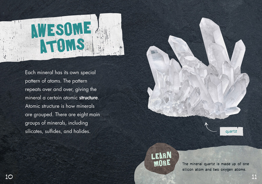 Minerals are all around us—in the water we drink, in the soil, and in many tools we use each day. This book introduces readers to some amazing minerals, such as copper and cobalt. Readers will learn what minerals are, where they're found, and how they're used. They will also learn how minerals are a part of the rock cycle. Stunning photographs and accessible hi-lo text allow readers to have an up-close look at the world's most interesting minerals. Graphic organizers and fact boxes highlight important facts. This book is sure to show readers why minerals…rock!