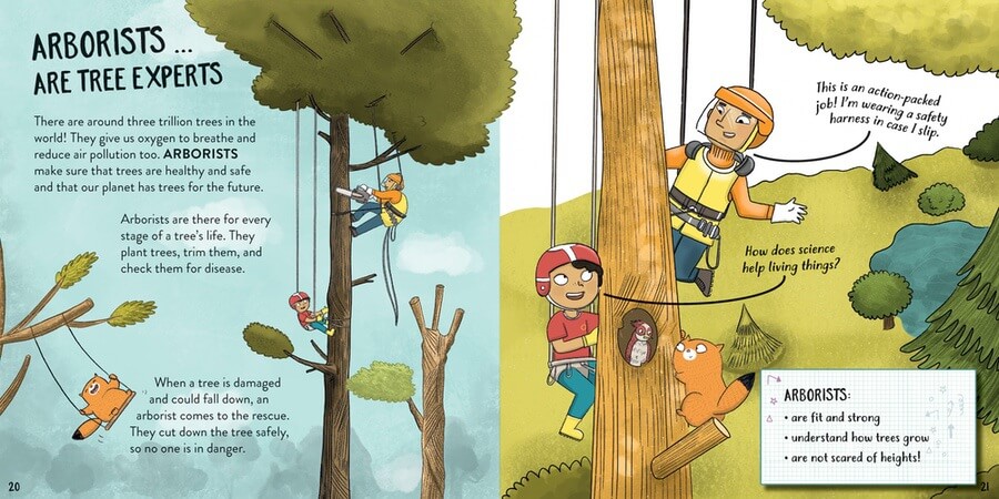 Do you like working outside? Some jobs, like park rangers and environmental engineers, work hard to protect the world around us and keep it safe for years to come. Other jobs, like mountain guides, teach people how to safely make their way through the mountains and respect it while they go. In this book, readers learn about these careers and more through the perspective of Billie. With the help of Mia the cat, Billie uses a magical dress-up box to try out different professions in nature and is transported to new locations to learn more.