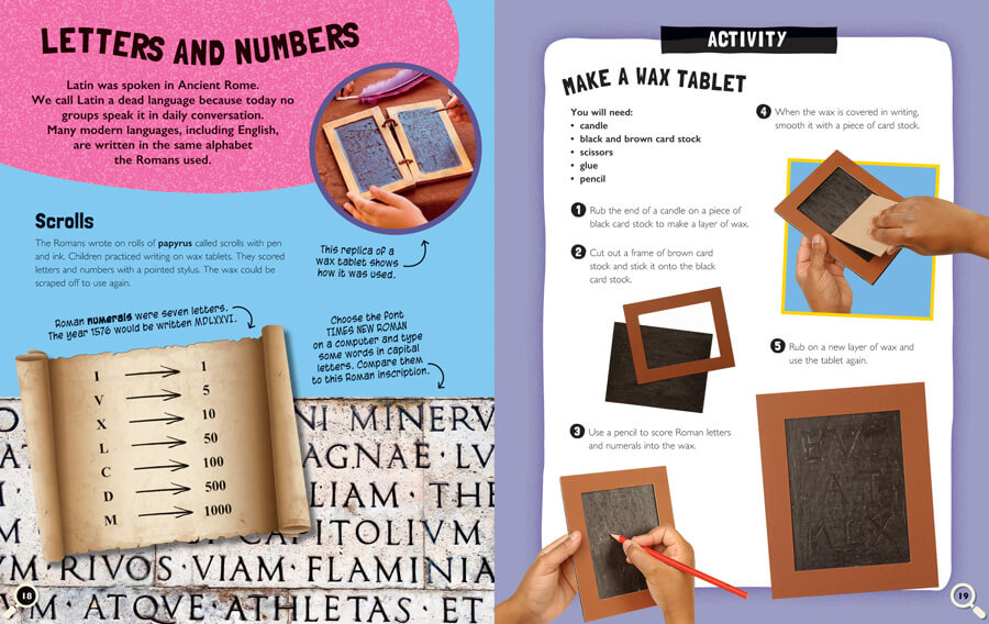 The history of the Romans remains a key topic covered in social studies curricula. Their contribution to architecture and the arts as well as the development of modern government, social systems, and education is still felt today. In this book, readers learn about these accomplishments through historical information and hands-on activities, made accessible to readers of all levels through clear step-by-step instructions. Readers can make a mosaic and a model chariot, and build and use a wax tablet as they learn about Roman gods and myths and the daily life of Romans.