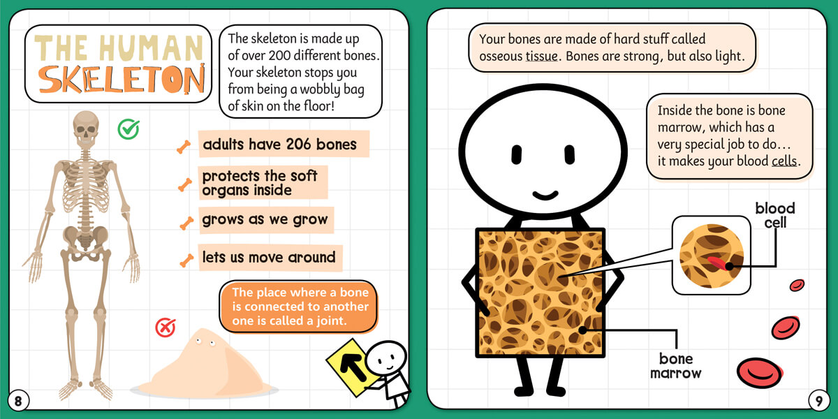 An adult human skeleton is made up of 206 bones, but there's much more to learn about the skeleton than just about bones. Your readers will learn interesting details including what bone marrow is and what joints do. They'll be instructed on different poses and exercises they can do to make sure their bones and joints stay strong and healthy.