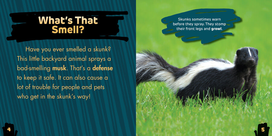 People generally try to avoid skunks—for a good reason! A skunk can spray a super-smelly substance at people and animals from up to 10 feet away. These mischief makers can create a very smelly situation for anyone who crosses their path. This book introduces readers to fun facts about skunks, from their diverse diet to their smelly defenses. Readers have the opportunity to think critically about skunks and their impact on their environment. Bright photographs and fascinating text allow readers an up-close encounter with this pungent pest—from the safety of a book.