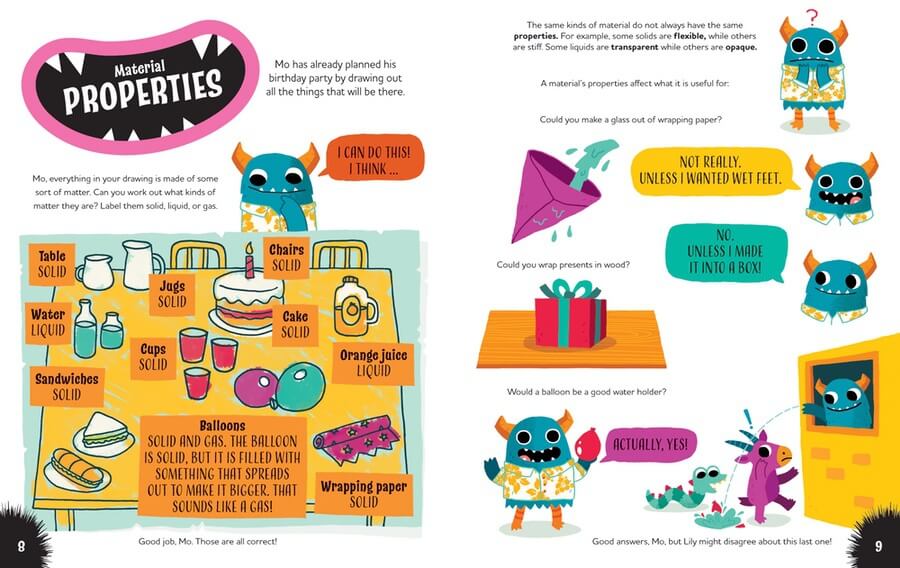 It's time to go to a birthday party! It's Mo's birthday and this cute blue monster has a lot to learn there—all about states of matter! Readers are invited to investigate solids, liquids, and gases alongside Mo and friends as they blow up balloons, plan drinks, and bake a cake. Key science information is found throughout the colorful pages of the book, all written in interesting, age-appropriate language. Questions throughout the text keep readers engaged with what they are reading.