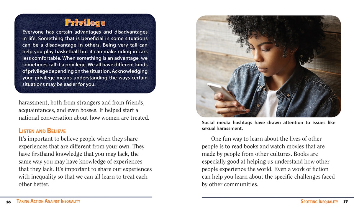 As inequality and social justice become larger parts of the daily news cycle, it's more important than ever for students to learn about inequality. With this book, students will learn how to spot inequality in their communities and discover what exactly to do when they see it. Readers are provided with real-life examples of people who noticed inequality in their communities and decided to set things right. With accessible, easy-to-grasp language, this volume teaches students that they have the power to stand up against bias and discrimination.