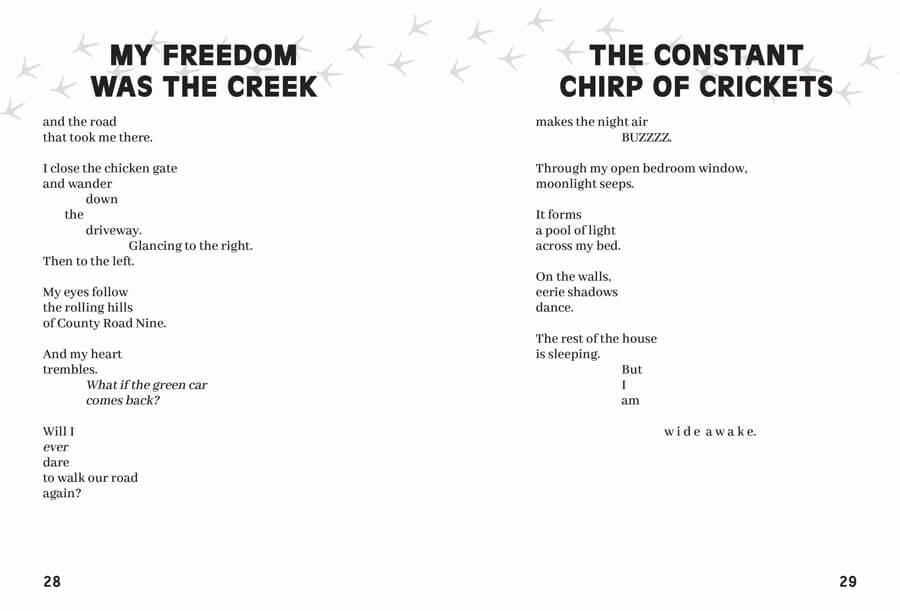 Meadow is enjoying a carefree country summer, tending her beloved 4-H chickens and freely exploring the outdoors. Content at home with her father, brother, and Nanna, Meadow wishes she could stay a kid forever. Everything changes the day the man in the green car stops her on the road, alarming her with an uncomfortable request. The brief encounter fills her with a strange new anxiety that she can't share with anyone. As fear fills her every move, she makes her world smaller and smaller to feel safe. But when a friend is also approached by the driver of the green car, Meadow realizes she must talk about what happened to protect others. Like the jack pine growing from the rocky cliff, Meadow can't fight growing up any longer, but maybe she can change her corner of the world for the better.