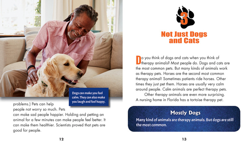 Pet a dog a day to keep the doctor away? Every knows pets are fun, but did you know that they can help keep you healthy, too? This book introduces readers to the world of animal therapy. They will meet real therapy pets and their handlers, and learn a little bit about the science behind pet therapy, and what it takes to be a good therapy animal. Accessible text, a few fun surprises, and lively illustrations make this easy-to-read book a winner.