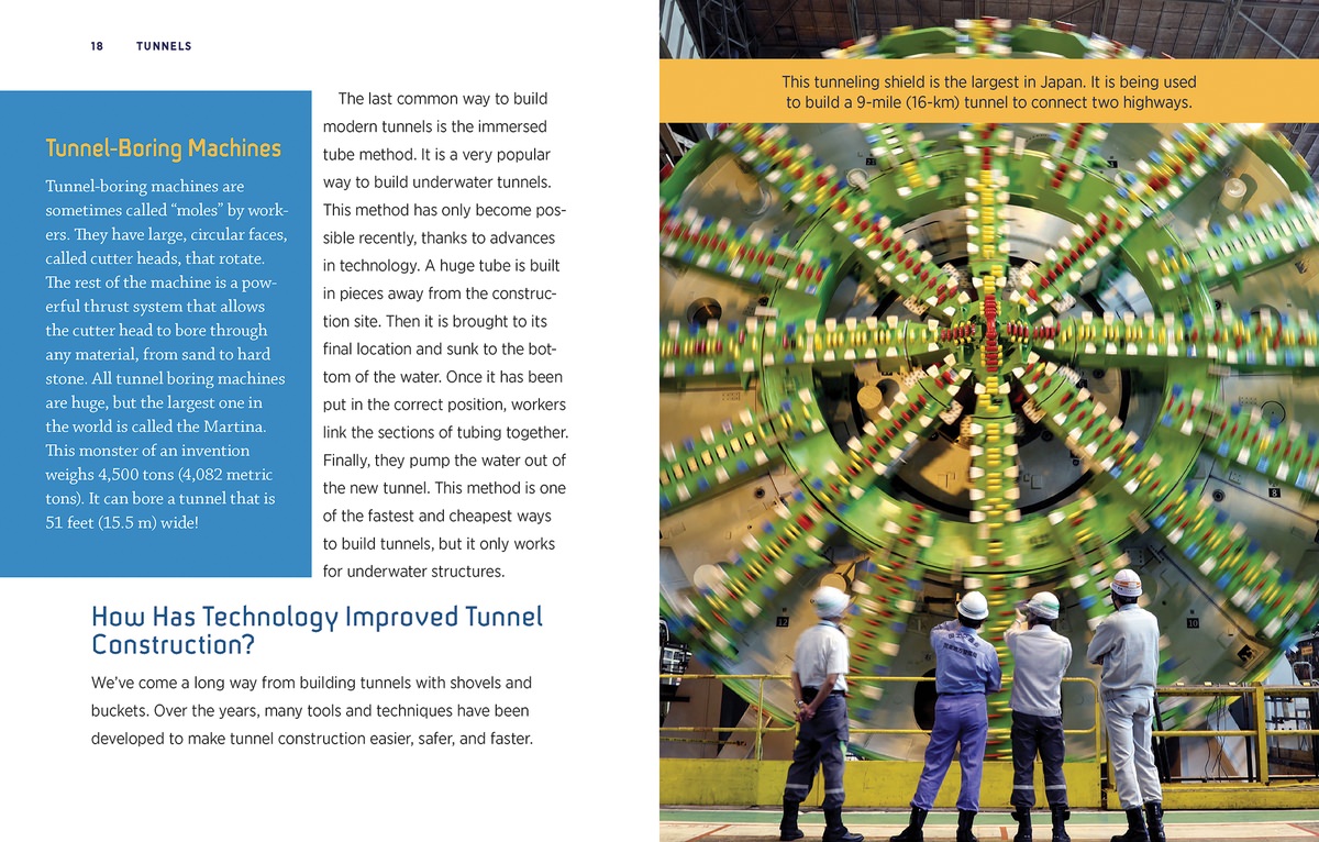 Today's tunnels, which extend through mountains and underneath oceans and rivers, are marvels of engineering. Readers take a close-up look at these structures and how they are built and maintained. Each chapter will focus on a key area, including the earliest tunnels, the technological advances that have improved their design and construction over time, profiles of tunnel-related careers, and examples of the most impressive tunnels in the world. This book's content correlates with Next Generation Science Standards, ensuring that young readers gain a deeper appreciation and respect for tunnels and the workers that create and maintain them.