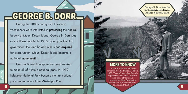 Featuring 47,000 acres (19020 h) of land along the coast of Maine, Acadia National Park is the perfect stop for campers, hikers, or anyone looking for adventure. While this park was designated as a national park in 1919, the Wabanaki people have lived in Acadia for over 12,000 years. In this book, readers will explore the landscape and history of Acadia National Park through beautiful full-color photographs. Readers will learn more important things to do and see on their own trip through Acadia National Park!