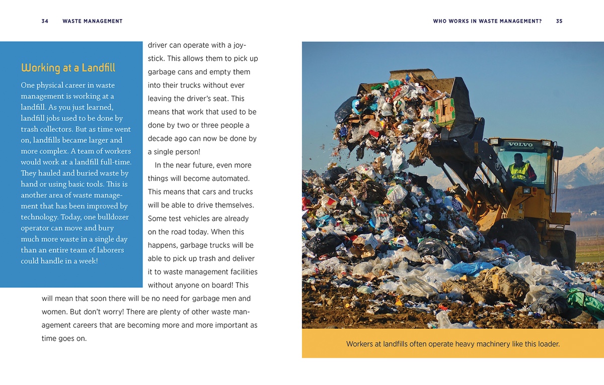 Waste management is one of the most essential infrastructure elements in any society. With engaging text and informative photographs, each chapter focuses on an important aspect of waste management, including the earliest examples of sewers and landfills, the technological advances that have improved the transportation, storage, and elimination of waste over the centuries, profiles of waste management careers, and some of the most impressive waste management systems in use globally today. This book's content directly correlates with Next Generation Science Standards. This ensures that young readers gain a deeper appreciation for waste management systems and the workers who build and maintain them.