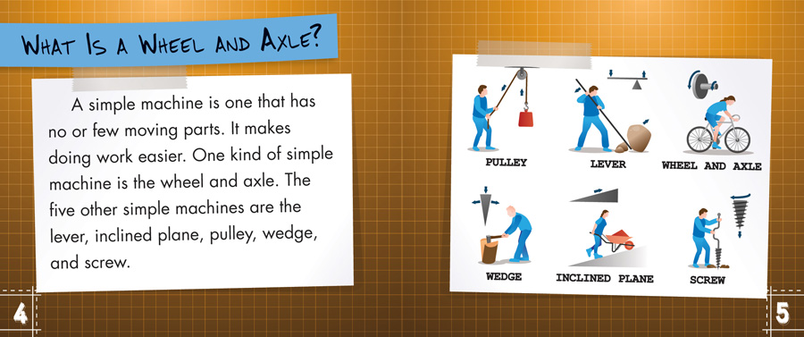 Readers likely use the wheel and axle machine every day in the form of doorknobs and faucet handles, but this fascinating invention is often overlooked. This book helps readers understand how the wheel and axle simple machine is all around them and helps build compound machines. Approachable text provides lasting knowledge about the forces that make these devices work. Bright full-color photographs including a picture gallery showing familiar objects using this simple machine aid readers in comprehending just how these mechanisms make tasks easier. The concepts in this book enhance a variety of elementary STEM curricula.