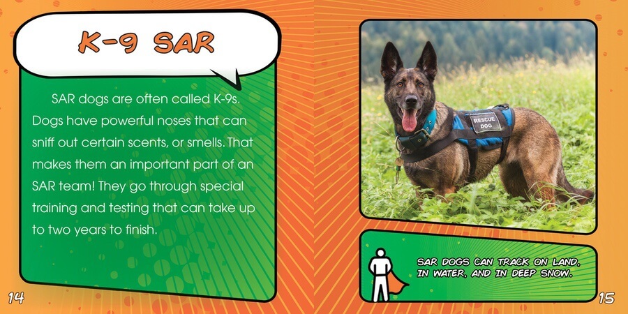 Who steps in when someone is lost, missing, or in a dangerous situation? A Search and Rescue (SAR) team! SAR teams are made up of police, firefighters, and trained volunteers with the knowledge and skills to respond to emergencies. SAR teams work in all different kinds of terrains and situations. They may conduct wilderness searches, flood, or water searches, K9 searches, aerial searches, or more. In this fascinating and informative book, readers learn all about the real-life community heroes that perform search and rescue missions. With age-appropriate language and vibrant photographs that bring the text to life, this book is sure to captivate and inspire readers.
