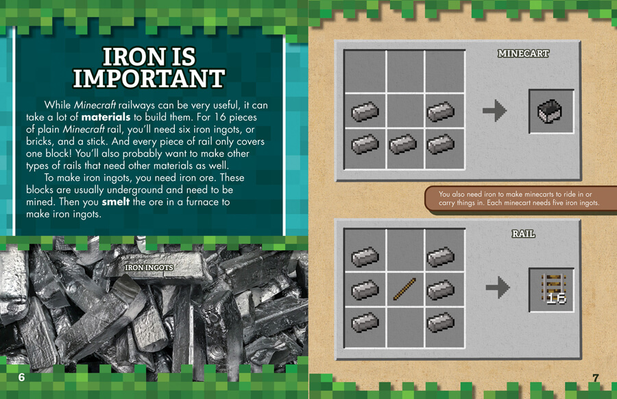 Moving around the Minecraft world is an essential part of the game. Gamers create railroads to carry them between towns they build. They can be used to make transportation systems in mines, but they are also for building roller-coasters! This volume encourages readers to get creative with their rail construction as well as gives tips on how to do it even better. Illustrations show readers what they can possibly build within the game and help them connect their gaming engineering to real-world engineering and other STEAM concepts.